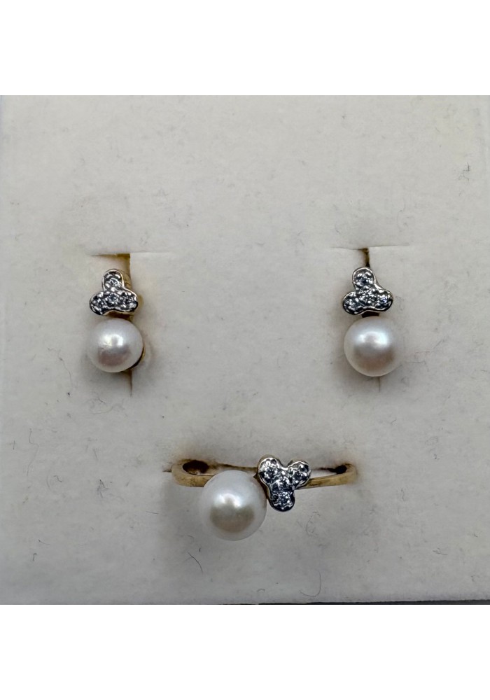 • JUEGO DE PENDIENTES Y SORTIJA DE PLATA CHAPADA PARA NIÑA COMUNION