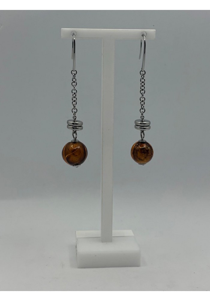 PENDIENTES ACERO LARGOS CADENITA Y PIEDRA DE COLOR