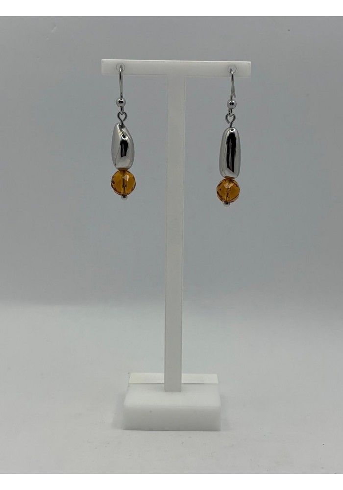 • PENDIENTES LARGOS DE ACERO CAENITA Y PIEDRA DE COLOR