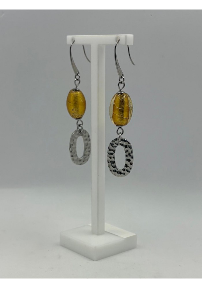 • PENDIENTES LARGOS DE ACERO CAENITA Y PIEDRA DE COLOR